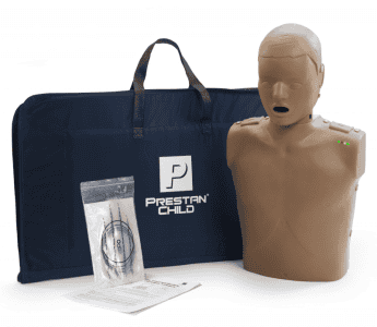 Prestan reanimatiepop kind met feedback monitor, 10 longzakjes & draagtas – Medium of Dark skin
